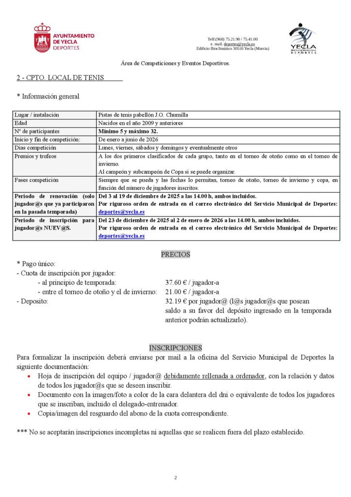 Inscripción Tenis