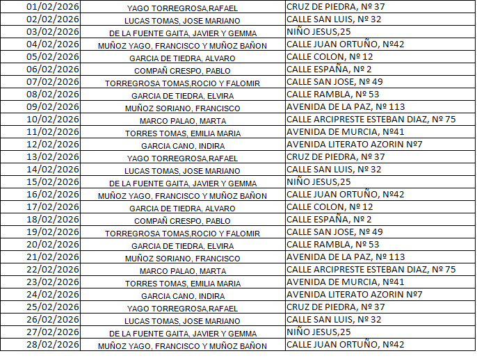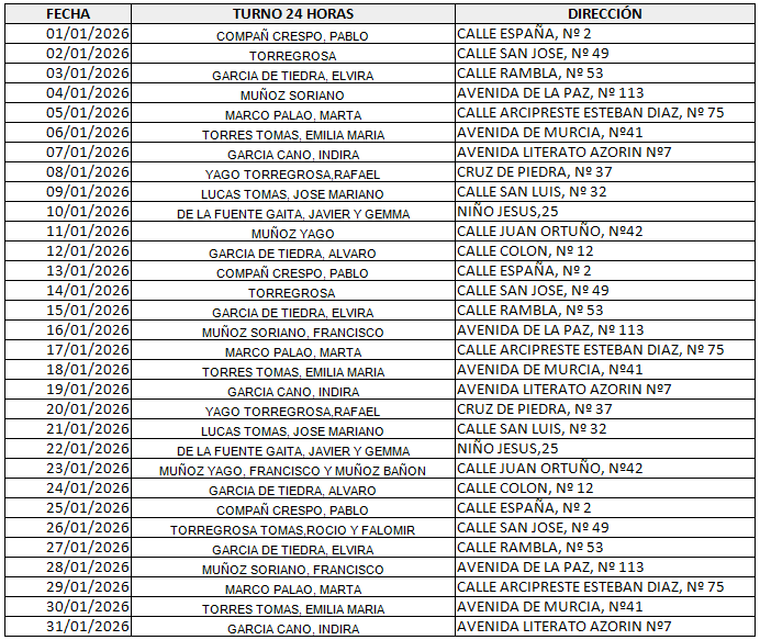 La guardia de 14 DE JULIO (prevista para la Farmacia Marco Palao/Polo Marco) la realizará la Farmacia PABLO COMPAÑ CRESPO.