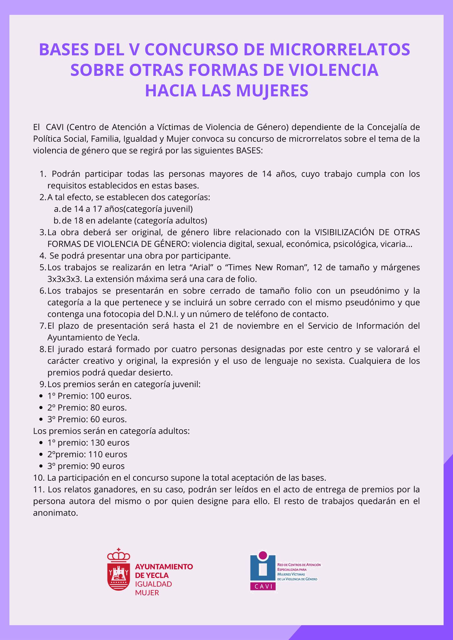 V Concurso de microrrelatos sobre otras formas de violencia hacia las mujeres