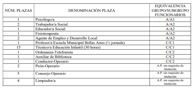 Además de dichos requisitos, los aspirantes tendrán que estar en posesión de las titulaciones que se detallan en las Bases Específicas, en función de la plaza a la que se opte.