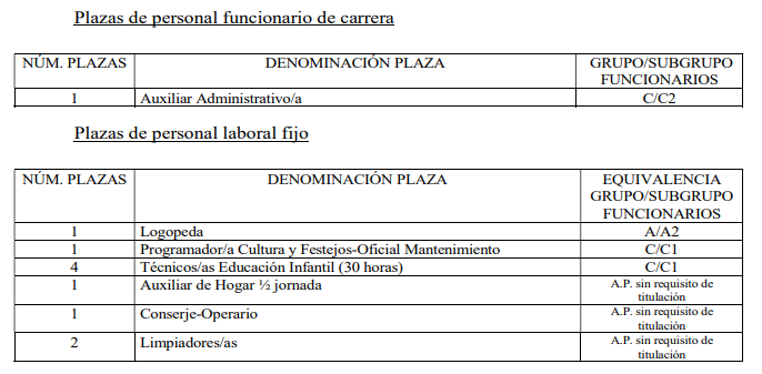Dichas plazas de personal funcionario de carrera y de personal laboral fijo aparecen incluidas en la Oferta de Empleo Público aprobada por la Junta de Gobierno Local, en sesión celebrada el 10 de mayo de 2022, modificada mediante acuerdo de dicho órgano municipal