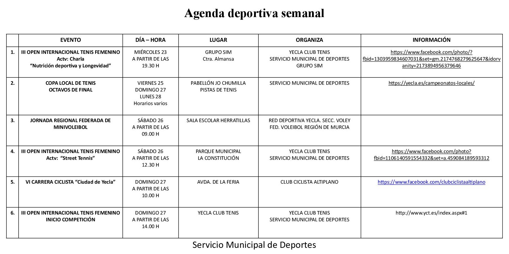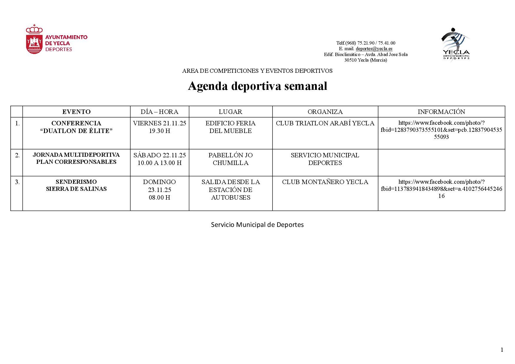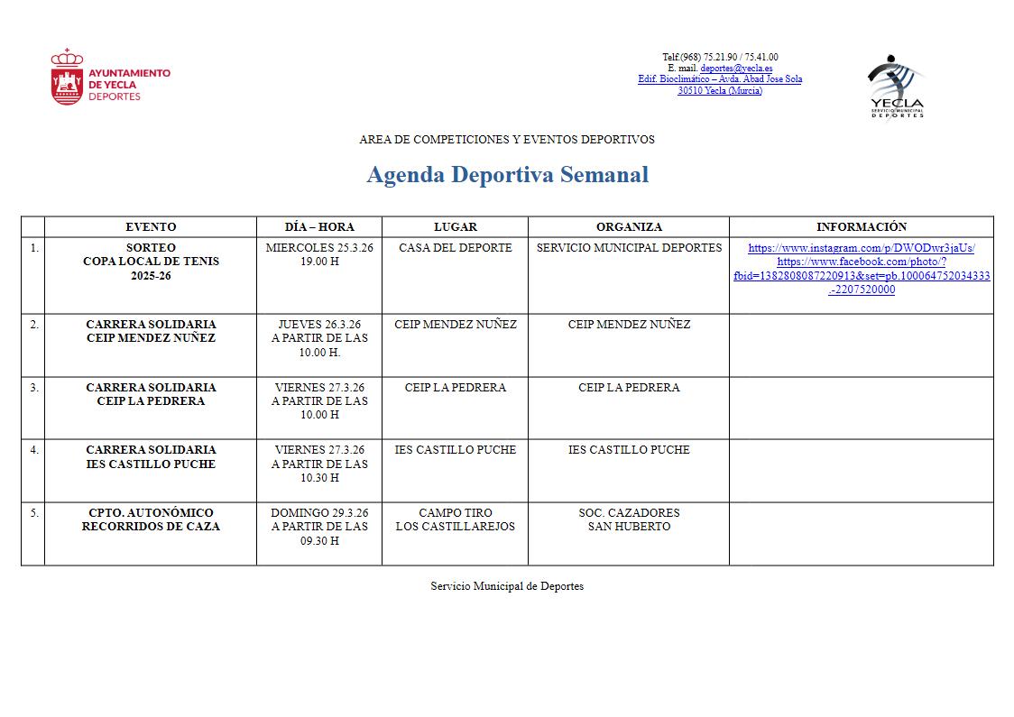 Inicio » Deporte, educación y juventud » Agenda deportiva