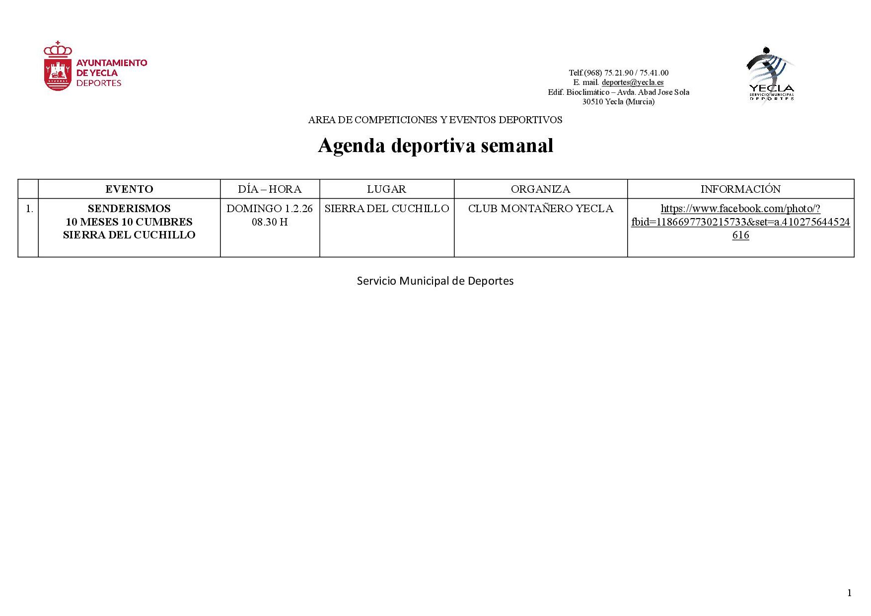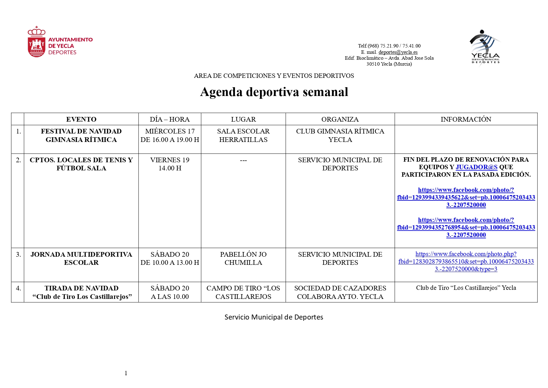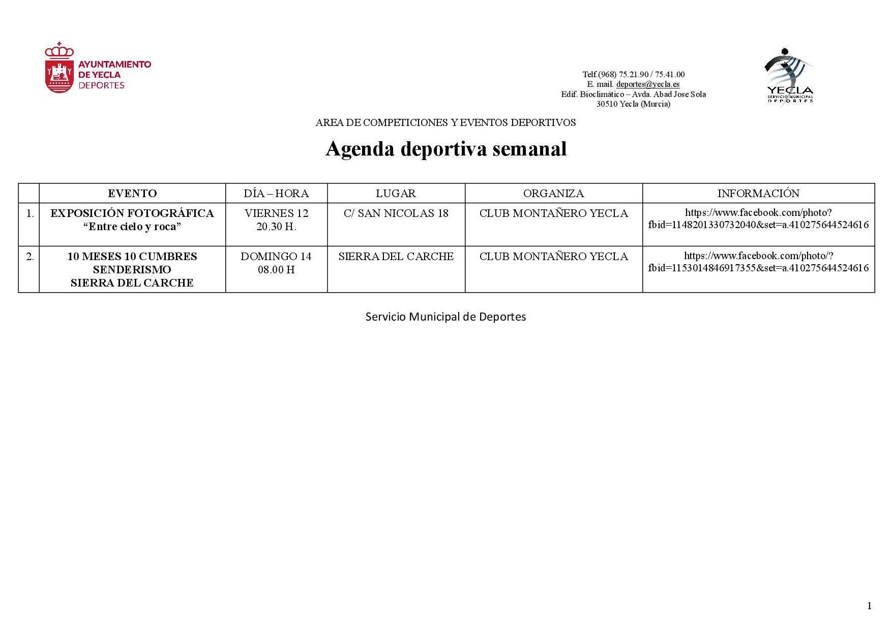 Inicio » Deporte, educación y juventud » Agenda deportiva