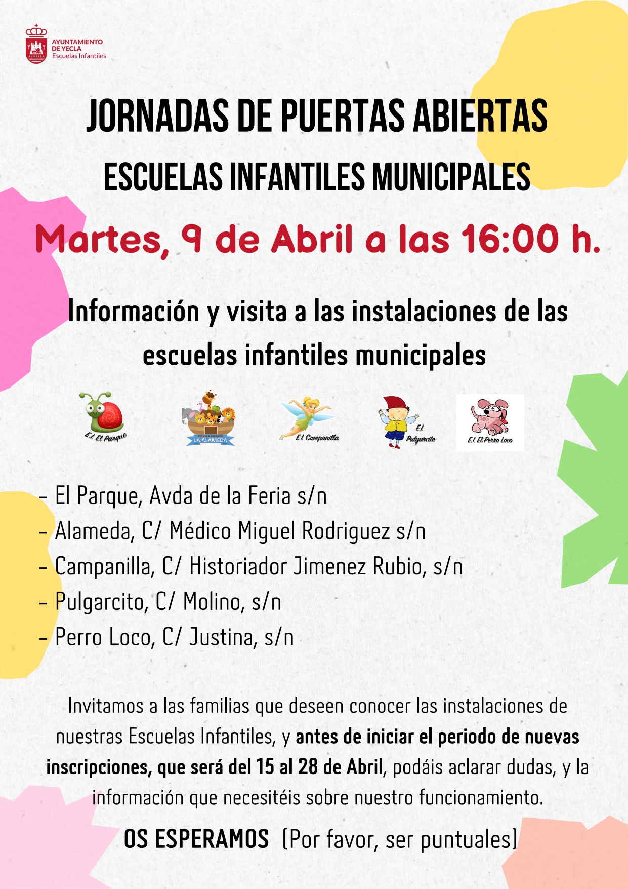 Las Escuelas Infantiles Municipales de Yecla son centros autorizados por el Ministerio de Educación ajustados a la legislación vigente y a las normas y reglamentos establecidos para su funcionamiento.