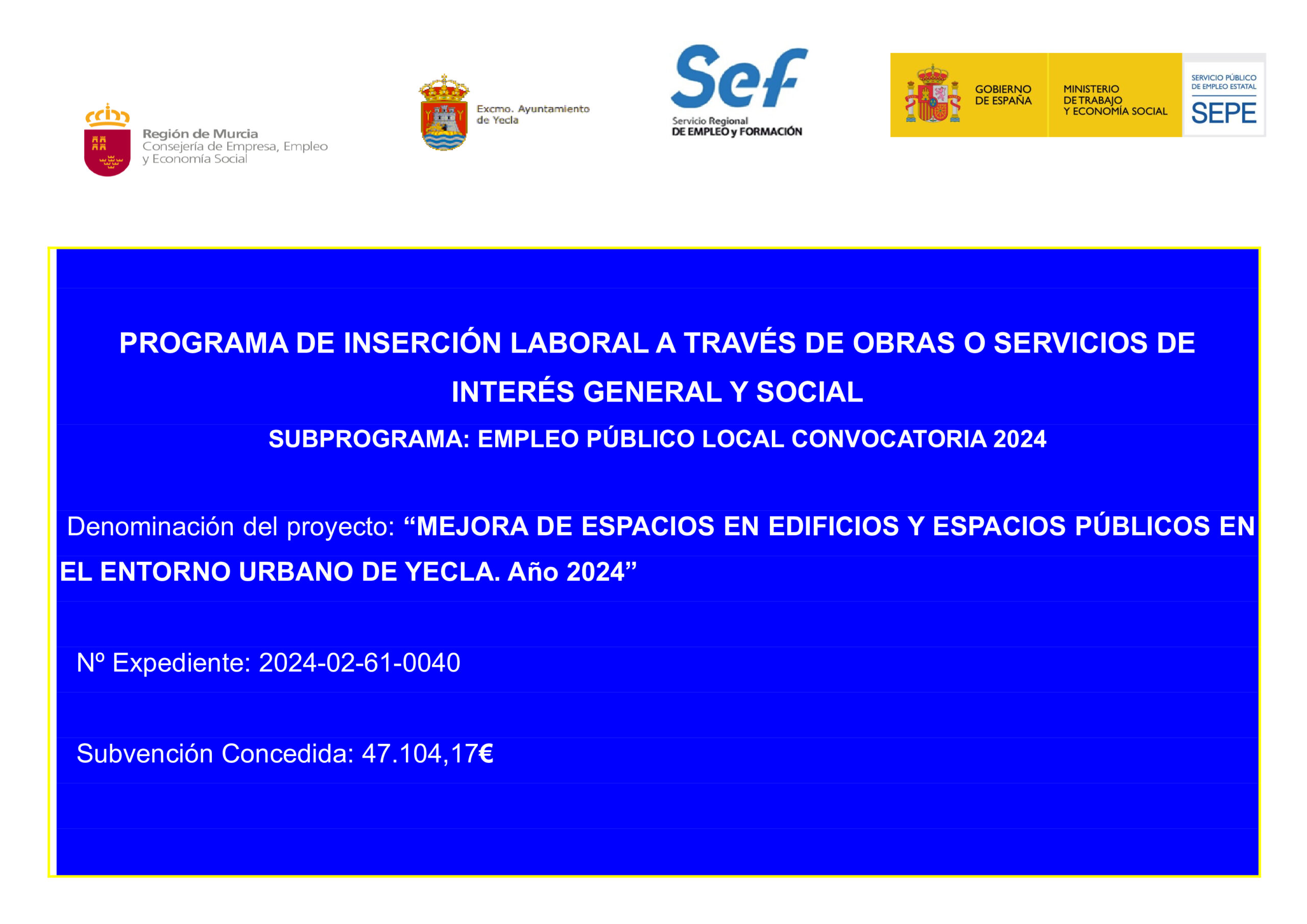 Los distintos programas de empleo público están orientados a subvencionar la contratación de trabajadores desempleados para la ejecución de obras y servicios de interés general y social en el ámbito de la colaboración de la Comunidad Autónoma de la Región de Murcia con las Corporaciones Locales y con entidades sin ánimo de lucro.