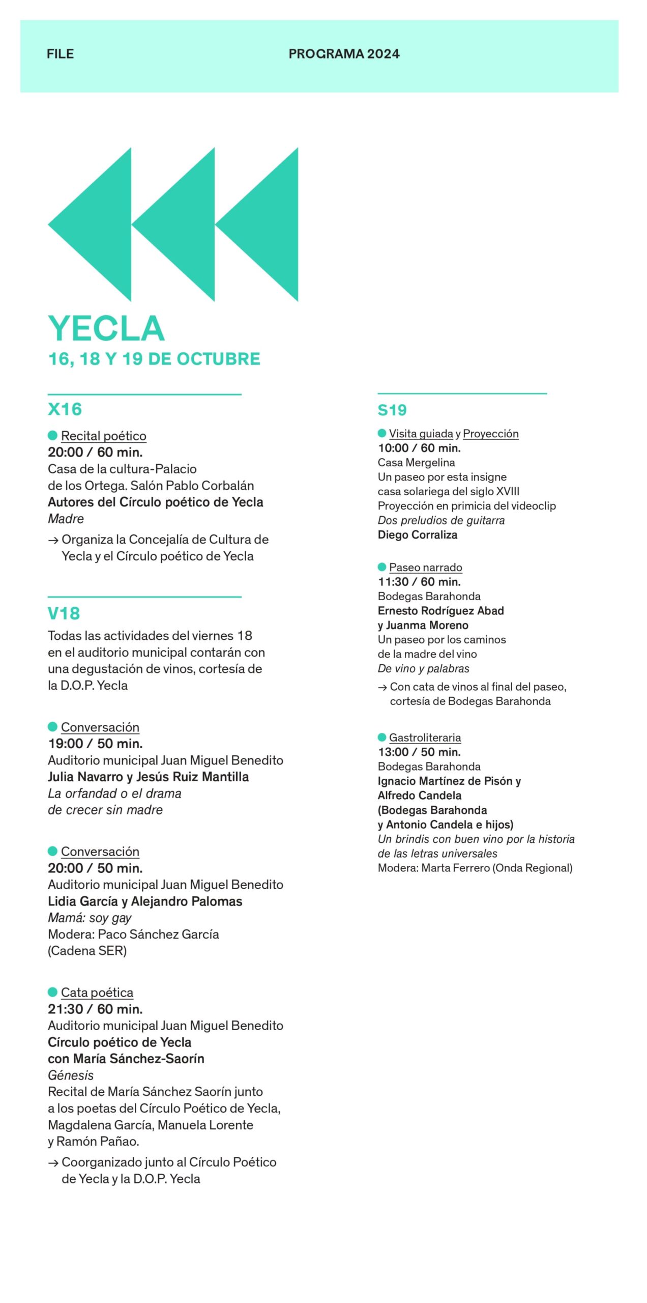Las actividades programadas en Yecla tendrán lugar los días 16, 18 y 19 de octubre.