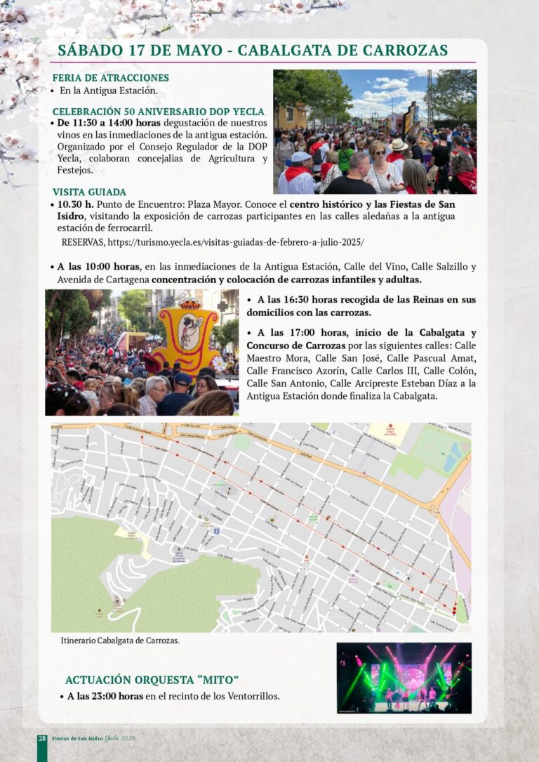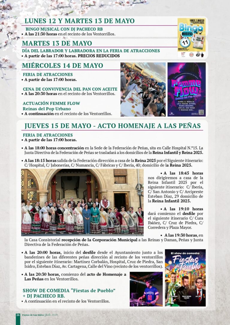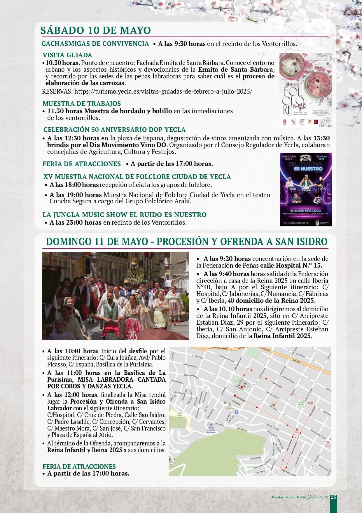 Programa de actos y otras actividades que con motivo de las Fiestas de San Isidro 2025 han programado la Federación de Peñas de San Isidro y la concejalía de Festejos del Ayuntamiento de Yecla.