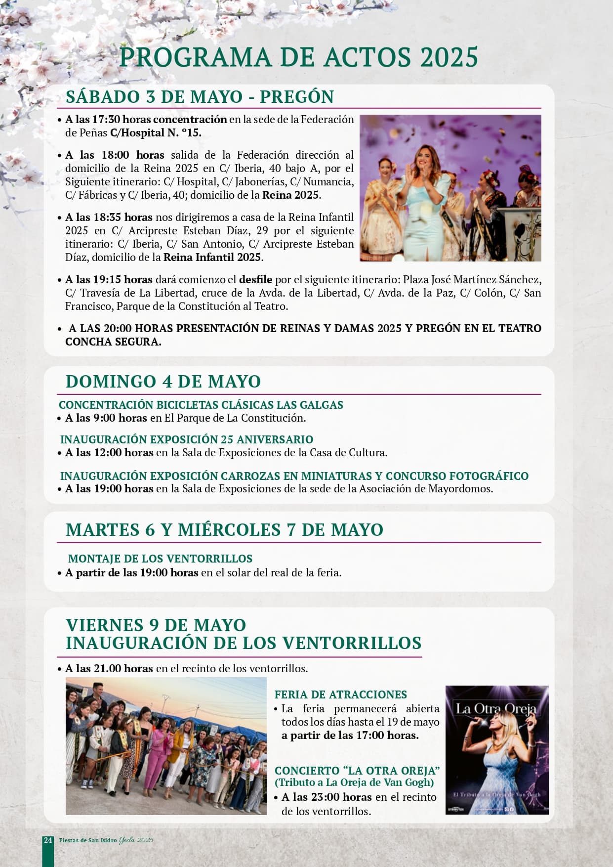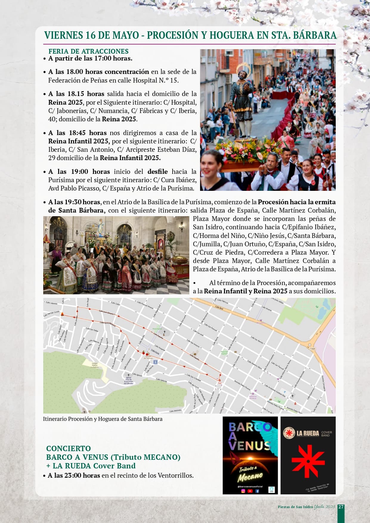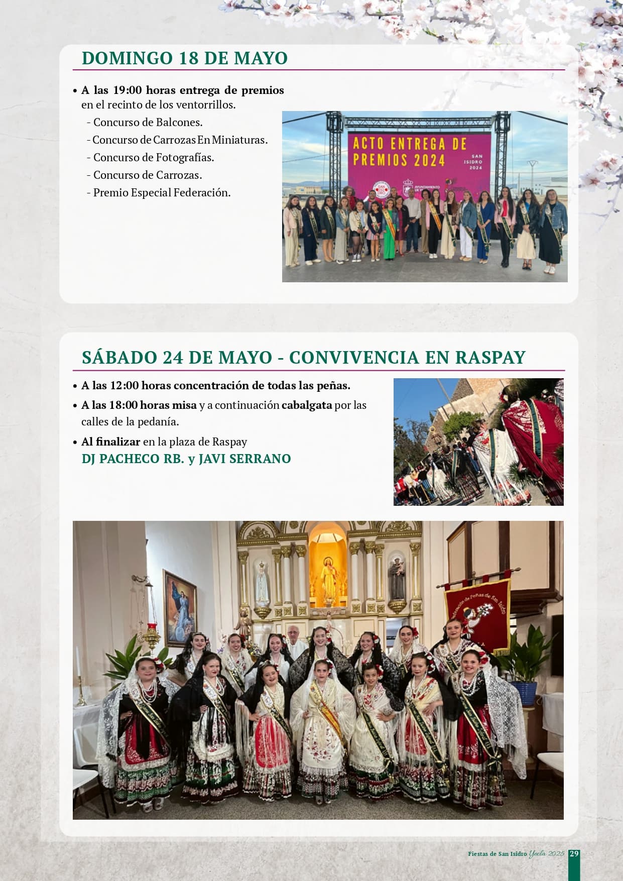 Programa de actos y otras actividades que con motivo de las Fiestas de San Isidro 2025 han programado la Federación de Peñas de San Isidro y la concejalía de Festejos del Ayuntamiento de Yecla.