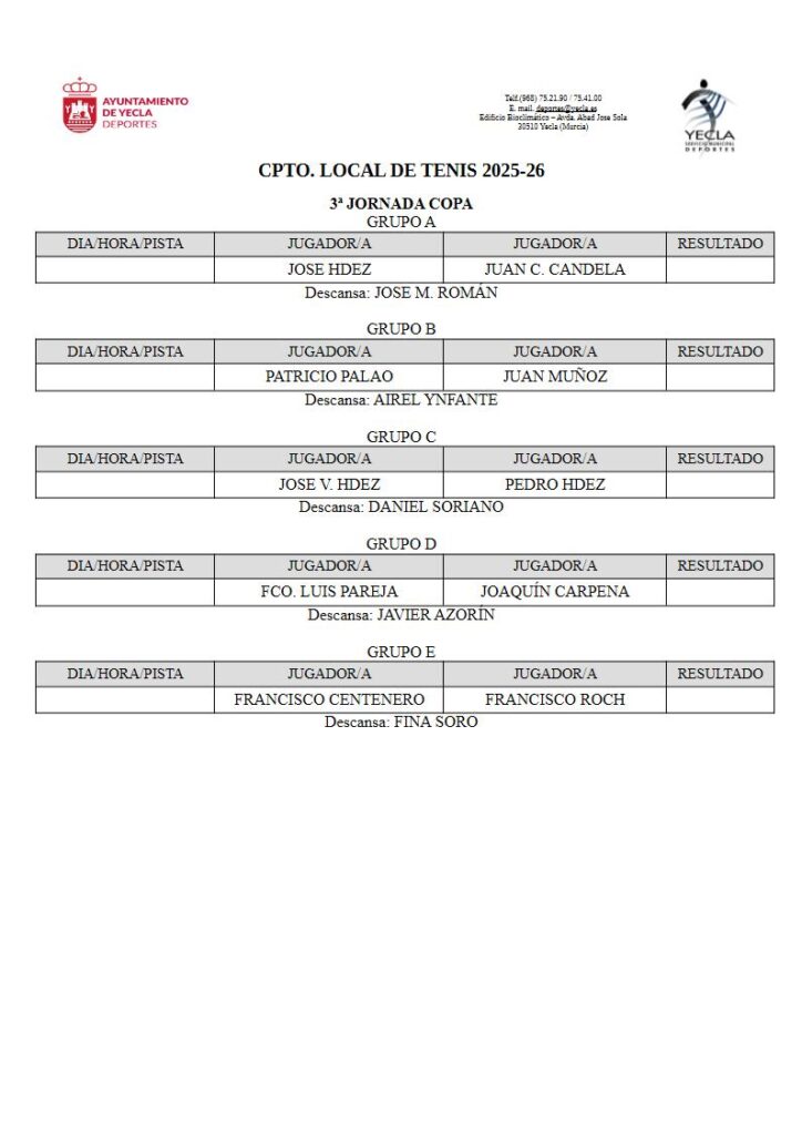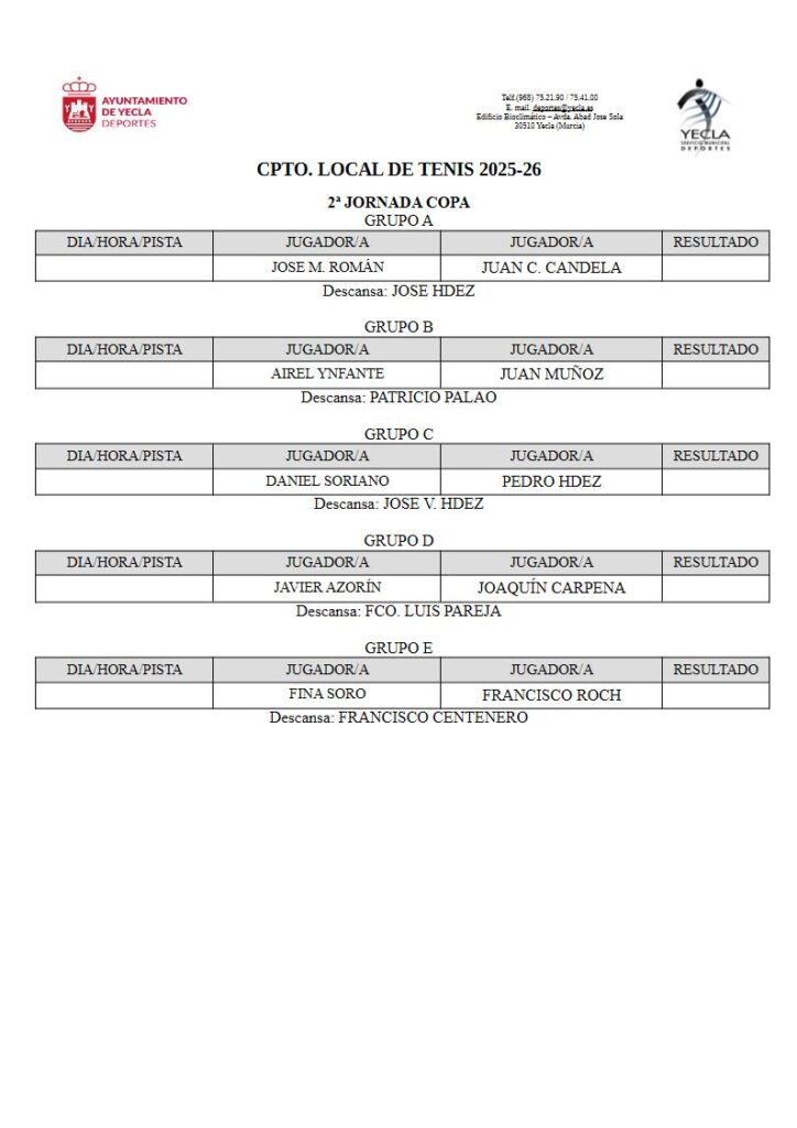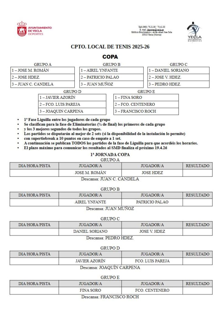 Horarios de la Copa Local de Tenis