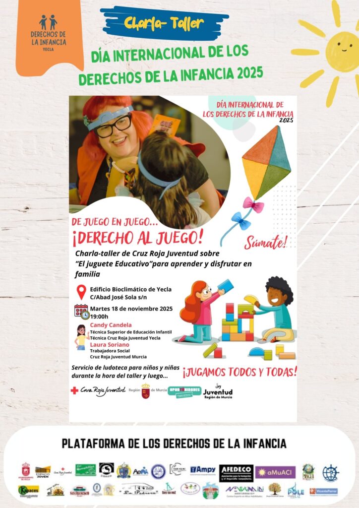 Las actividades arrancarán el 18 noviembre, a las 19 horas, en el edificio Bioclimático, con una charla taller organizada por Cruz Roja Juventud sobre el juguete educativo. La responsable del proyecto Candy Candela ha explicado que “habrá un servicio de ludoteca mientras se realiza la charla para que los padres puedan asistir y luego jugaremos todos juntos. Con esta charla queremos hablar de la importancia del juego ya que es un derecho de la infancia”.