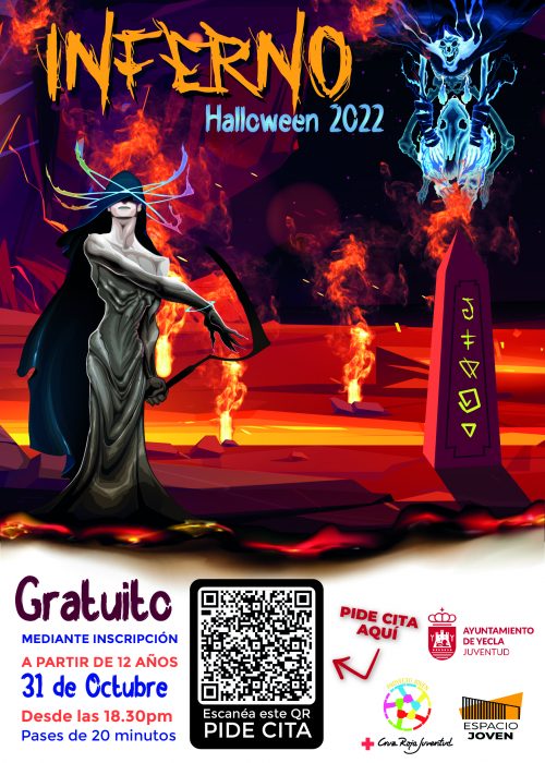 La Concejalía de Juventud, en colaboración con Cruz Roja Juventud, organiza una nueva edición del pase del terror que este año se denomina “Infierno” con motivo de la fiesta de Halloween 2022.