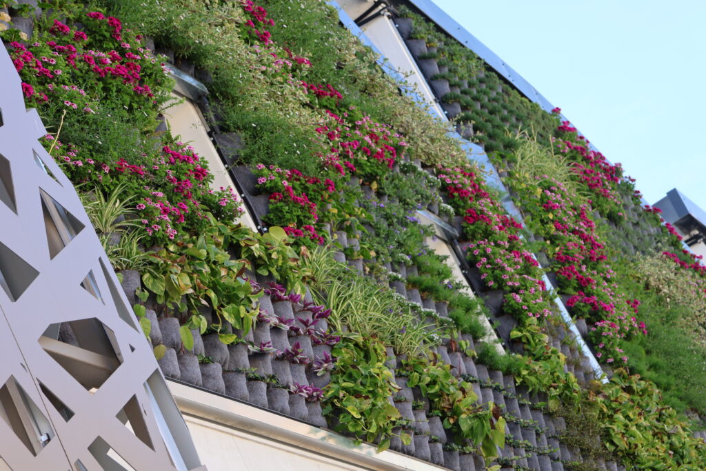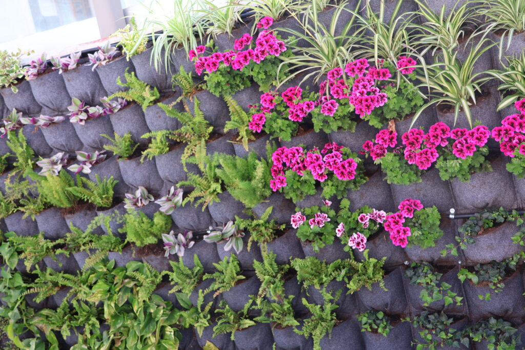 El jardín vertical es una intervención de 165 metros cuadrados distribuidos en dos fachadas diferentes del Mercado, una orientada a la cara oeste y otra en la cara norte, que incorpora una combinación de diferentes variedades de plantas adaptadas al clima mediterráneo, como margaritas amarillas, romero rastrero o clavelinas en las zonas más soleadas, y otras como hiedra, helechos o cintas en las zonas de sombra.