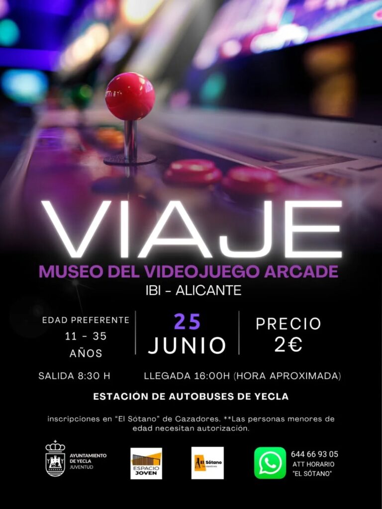 La Concejalía de Juventud, a través del Espacio Joven y el centro juvenil de ocio “El Sótano” de Cazadores organiza un viaje al Museo del Videojuego Arcade Vintage de Ibi (Alicante) para los jóvenes de Yecla de entre 11 y 35 años.
