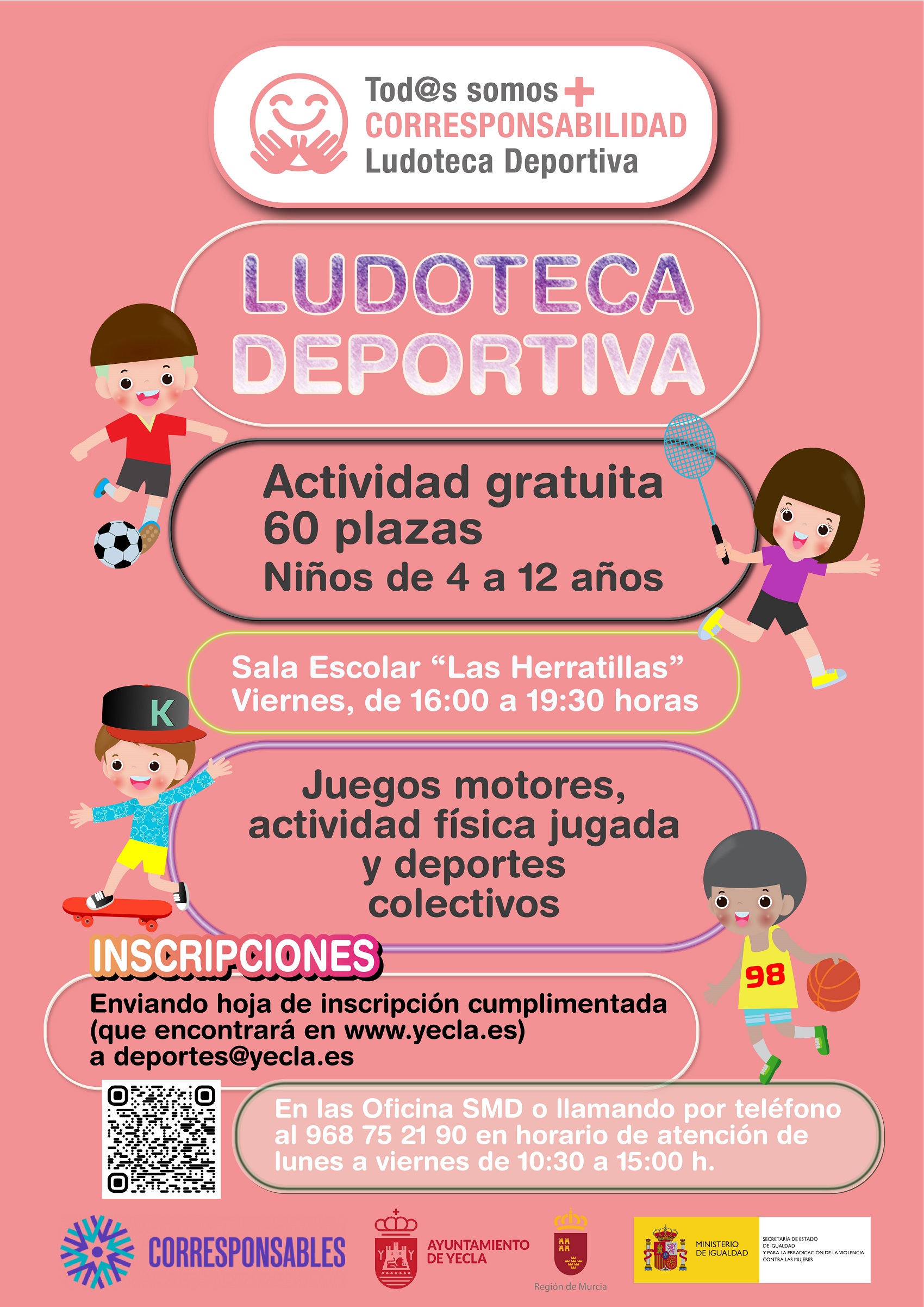 Se pone en marcha la LUDOTECA DEPORTIVA VIERNES TARDE para los meses de noviembre y diciembre en la Sala Escolar Herratillas de 16:00 a 19:30 h, con juegos motores, actividad física jugada, deportes colectivos, etc.