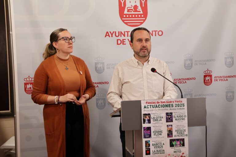 El concejal de Festejos, José Antonio Marín, y la presidenta de la Federación de Peñas, Silvia Guillén, ha informado del amplio programa y novedades de las Fiestas de San Isidro 2025.