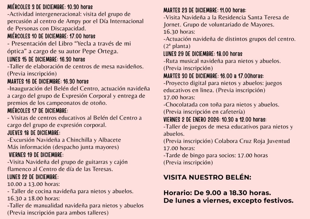 Programación del Centro de Mayores «Las Herratillas» Diciembre 2025