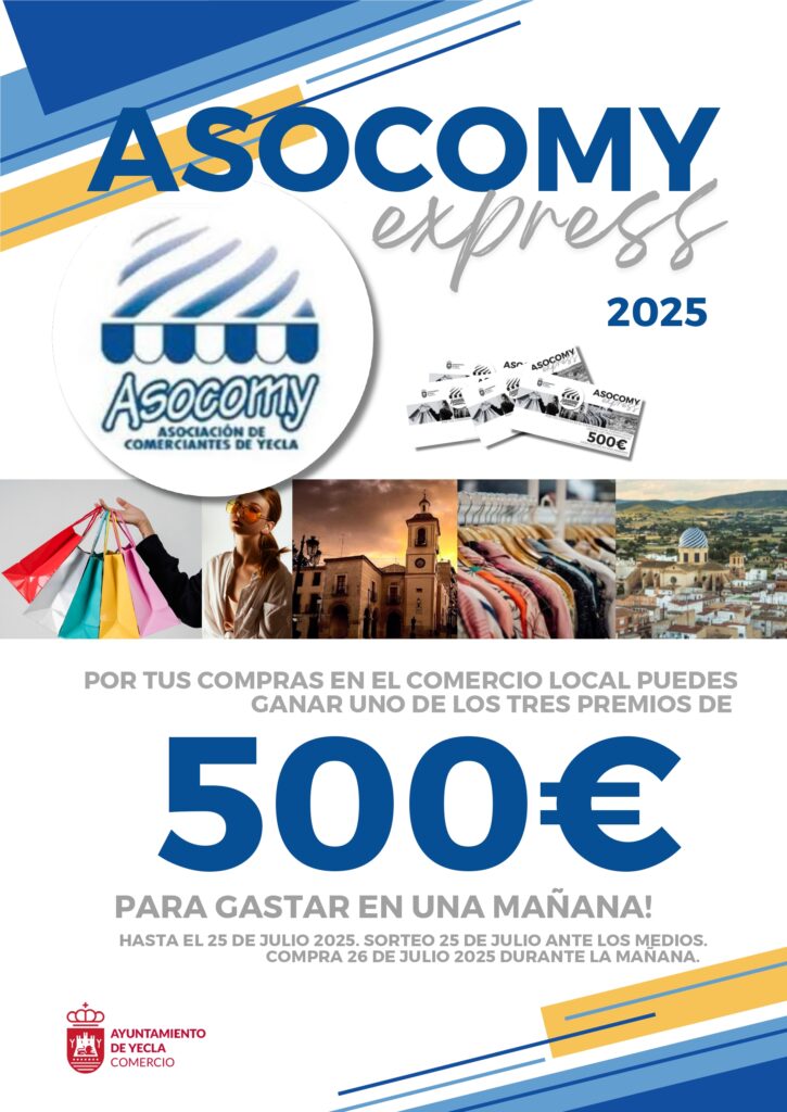 Esta mañana, ante los medios de comunicación y con la presencia de la concejala de Comercio, María Martínez, y el presidente de Asocomy, Adrián Soriano, se ha procedido a desvelar los tres números premiados con 500 euros cada uno en el sorteo de la campaña Asocomy Express.