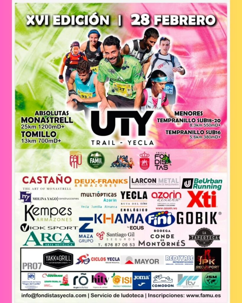 La UTY Trail cumple 16 años y desde la primera edición ha buscado el objetivo de crear afición en las carreras de montañas. Se trata de una prueba en plena naturaleza que discurre por sendas dentro de la Sierra de Salinas y cuyo principal atractivo es al dureza en las subidas y el paisaje.