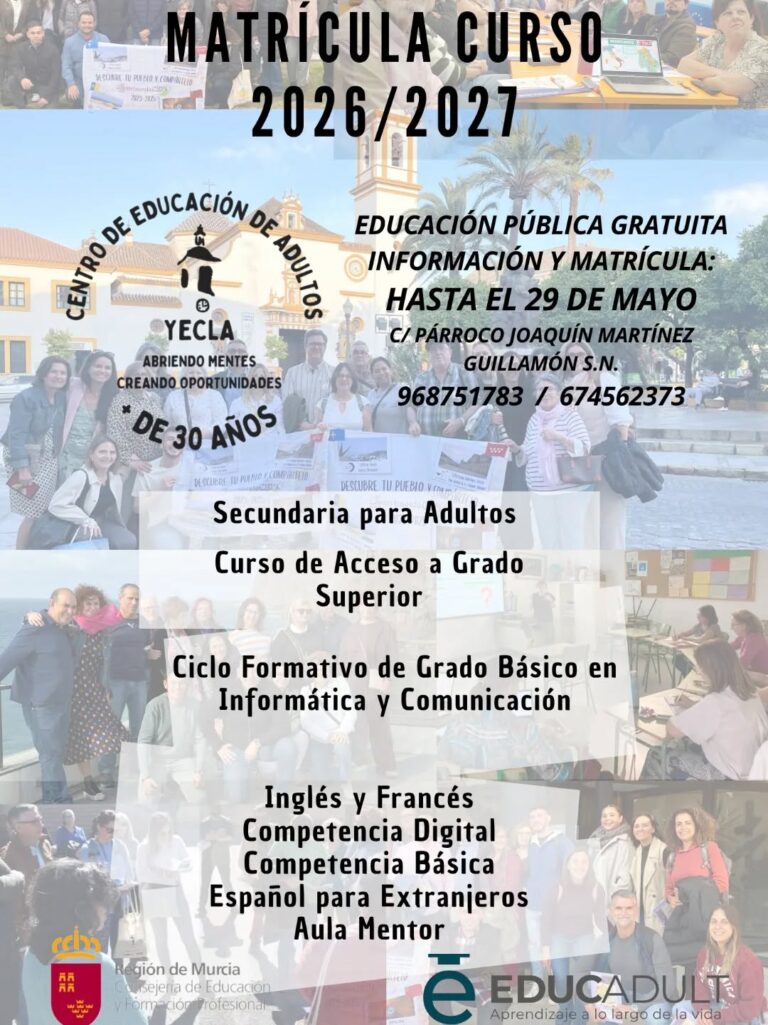 Matrícula Curso 2026/2027 Centro de Educación de Adultos