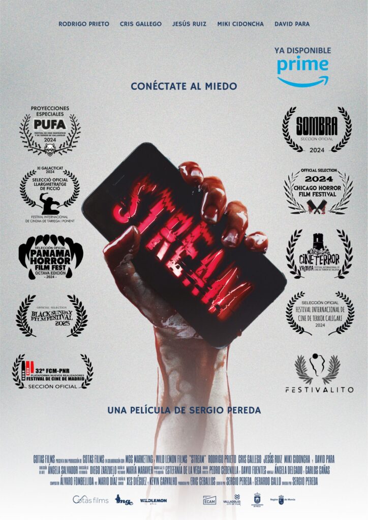 El largometraje “STREAM” ya ha recorrido una destacada trayectoria en festivales internacionales del género, como: PUFA (Panamá), Chicago Horror Film Festival (EE.UU.), Festival Internacional de Valdivia (Chile), Tarrega i Ponent (Urgell), Festival de Cine de Madrid o el Blacksunday Film Festival (Reino Unido).